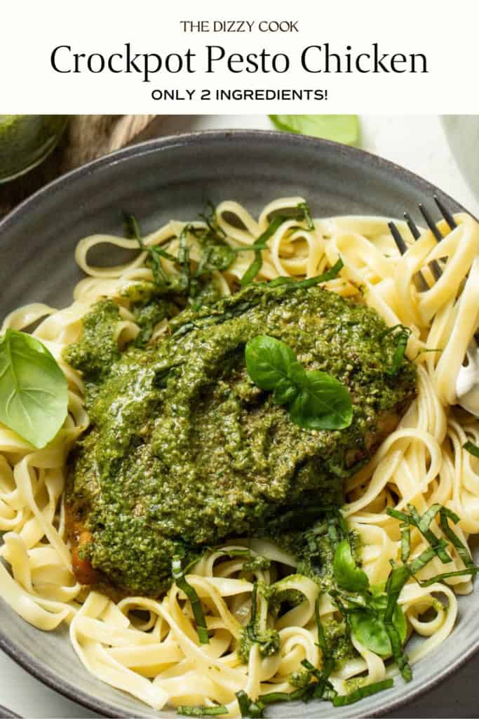To make a chicken pesto pasta, simply pre-cook the pasta according to package directions. Stir the pasta into the sauce in the crockpot after the chicken has finished cooking.